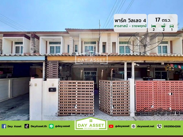 ขายทาวน์โฮม 2 ชั้น หมู่บ้านพาร์ค วิลเลจ 4 สารสาสน์-ราชพฤกษ์ เนื้อที่ 17 ตร.ว. ขายเพียง 1,190,000 ล้านบาท