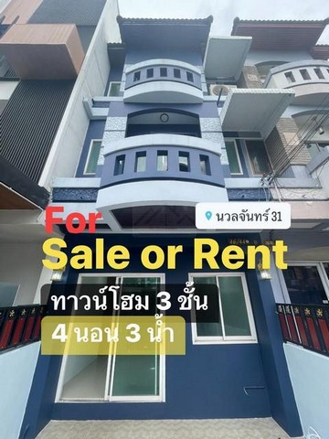 ให้เช่าและขายทาวน์โฮม 3 ชั้น นวลจันทร์ 31 4 นอน ใกล้ Central EastVille