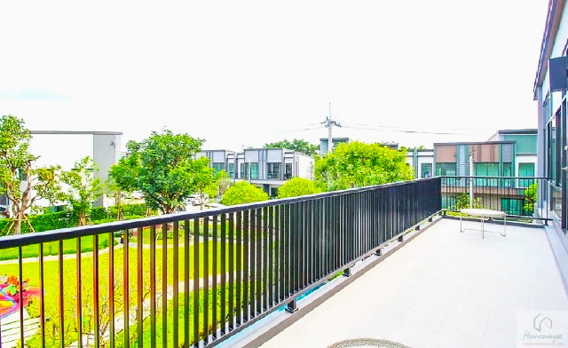 - ตรงข้ามบ้านเป็นสระว่ายน้ำส่วนกลาง และสวน