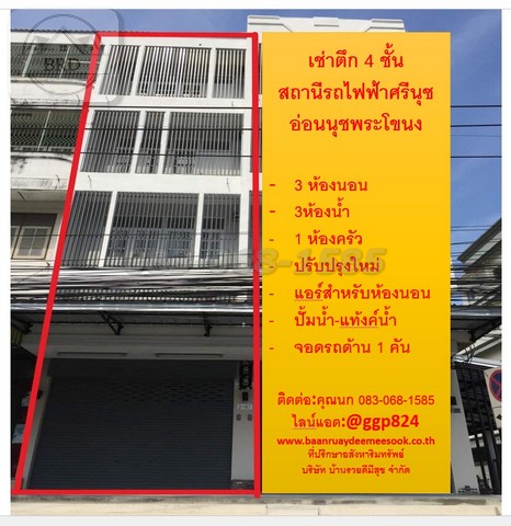 เจ๋งสุดๆๆ แค่ 300 เมตร รถไฟฟ้าสถานีศรีนุช ราคาดีเกินคุ้ม 35,000 หมื่น/เดือน ติดถนนอ่อนนุช ตึก 4 ชั้น สวนหลวง กรุงเทพฯ