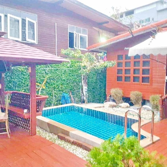 Ngamwongwan 10-18 MRT KhaeRai 2.2km. For rent pool villa vacation home 36 sq.wa.145 sq.m. shady atmosphere Ngamwongwan area Dhurakij Pundit University 2.3 km.2 bed 1 bath with furniture swimming pool fitness 29,999 B-M community area shopping The Mall Ngamwongwan 700 m.convenient transportation Ngamwongwan Road. Prachachuen