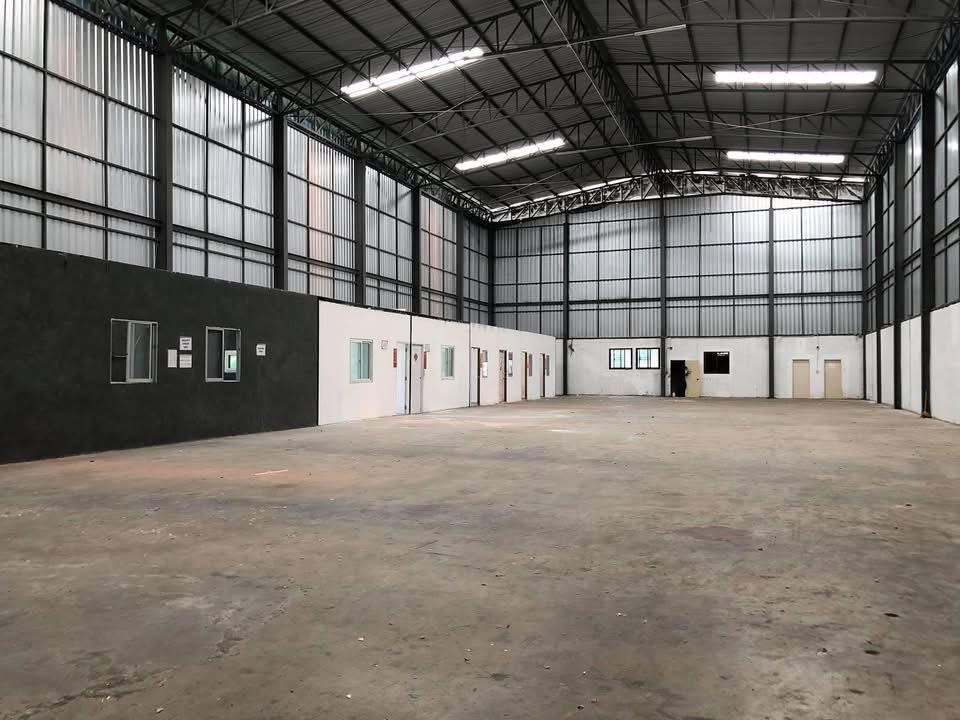 โกดัง ขนาด 750 ตร.ม. • พื้นรับน้ำหนักได้ 3 ตันต่อตร.ม. • หลังคาด้านข้าสูง 9 เมตร จั่วกลางสูง 12 เมตรถนนบางนากม.9