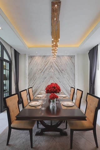 ห้องรับประทานอาหารพร้อมห้องครัวแบบเปิด