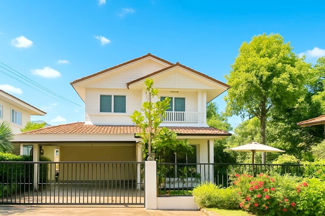 คลองบางไทร MRTตลาดบางใหญ่ 3.52กม. โลตัส คลองถนน 2.7 กม.ให้เช่าบ้านเดี่ยว 2 ชั้นสุดหรู 54 ตร.วา.จัดเต็มเฟอร์ฯ ร่มรื่น ติดสวน 3 นอน 3 น้ำ