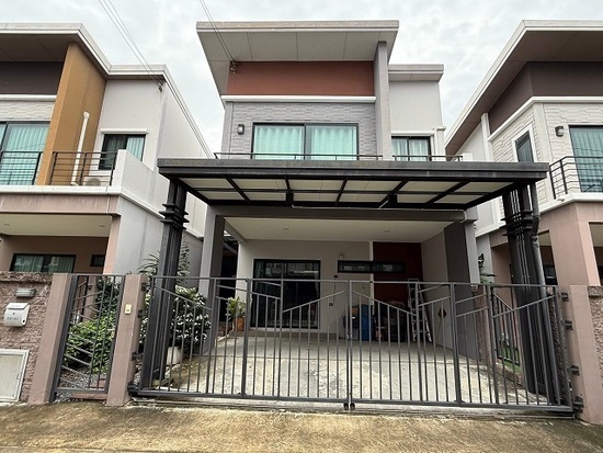 Sukhumvit Phraeksa Kanchana 3bed 2-story townhouse for rent-sale single-family home Fully furnished BTS Srinakarin 2.2 km. 28 sq.wa. 224 sq.m. 1.3 km. from Praphamontri School 2 16,998 B-M. Selling for 3.35 million baht 2bath Located in a community area close to shopping Pak Nam Market convenient access to Phraeksa-Electricity Intersection 2.3 km. Srinakarin Road.