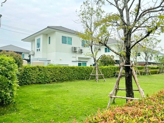 backyard garden view Lotus Bueng Kham Phroi 1.5 km. For Sale/Rent: 2-story detached house 56 sq.wa. 230 sq.m. no neighbors. Eastern Asia Village 6.6 km. 4bed 3bath good air fully furnished. 29,998 B-M.Selling for 4.69 million baht.Suitable for home office or residence. Chatchawal Market Khlong 7 2.3 km. Convenient transportation. BTS Khuk Khot