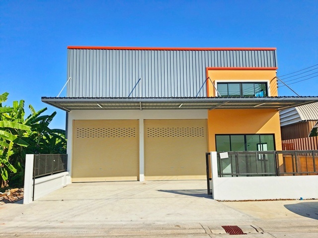 อาคารสร้างใหม่ออกแบบใช้งานได้จริง ประกอบด้วยพื้นที่สำนักงาน 1 ห้อง ห้องนอน 1 ห้อง ห้องน้ำ 2 ห้อง พื้นที่เก็บสินค้ากว้าง หลังคาบุฉนวนกันความร้อน พร้อมพัดลมระบายอากาศ ช่วยลดความร้อนภายใน จอดรถด้านหน้าอาคารได้หลายคัน ตั้งอยู่ติดถนน เข้าออกสะดวก เหมาะสำหรับเป็นสำนักงานควบคู่คลังสินค้า