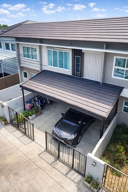 หลังคาหน้าบ้านสำหรับจอดรถเรียบร้อย