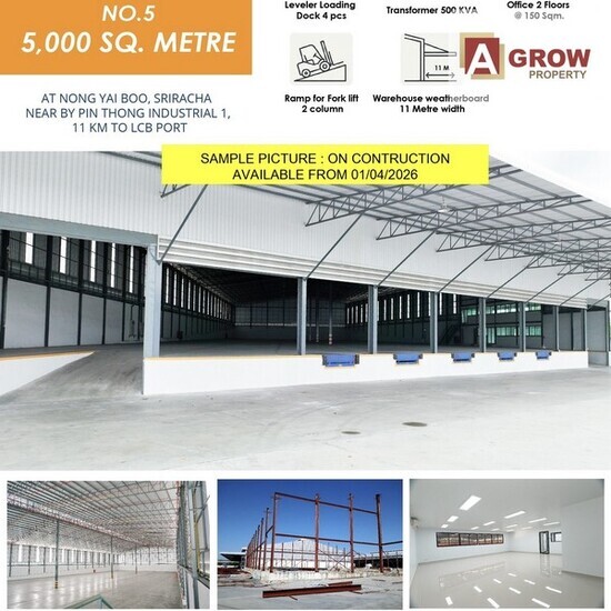 ให้เช่าโรงงาน/โกดัง ขนาด 5,000 ตร.ม. อำเภอศรีราชา จังหวัดชลบุรี (พร้อมให้ชมวันที่ 1/4/2026)