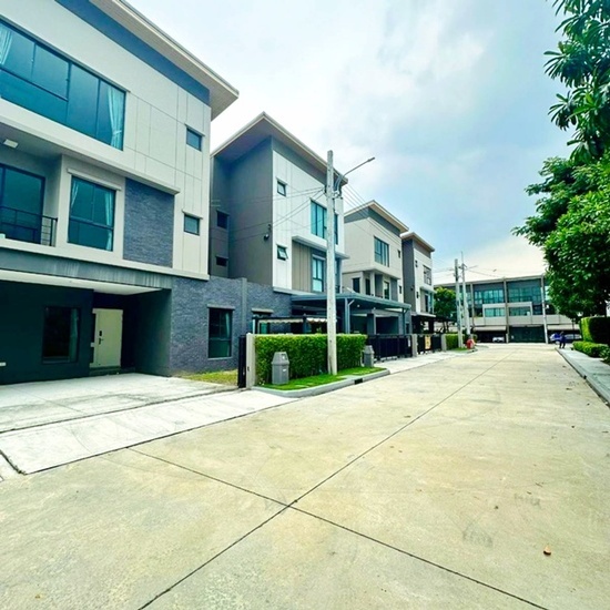 Fashion Island 1.8km. MRT Ramintra83 900m. Khubon 3-story house 4bed 4bath near usable area 31sq.wa. 370sq.m. rent 64,999 B-M corner house next to garden luxury villa style fully furnished suitable for living prime location in Ramintra tranquil and private atmosphere connected to Chalong Ratch Expressway and Kanchanaphisek Expressway
