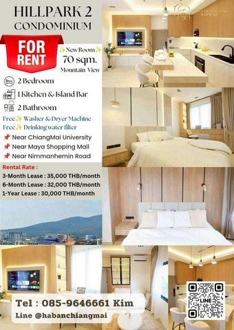 ให้เช่า 30,000 บาท/เดือน #Hillpark2 #เจ็ดยอด 70 ตรม. 2 นอน 2 น้ำ ห้องขนาดใหญ่ #รีโนเวทใหม่ ระเบียงกว้าง วิวสวย #หิ้วกระเป่าพร้อมเข้าอยู่
