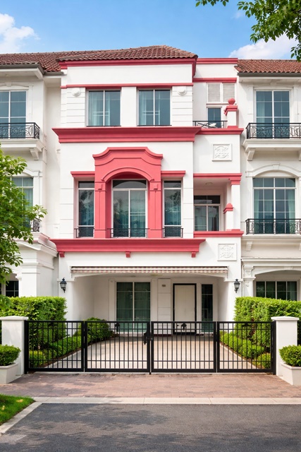 BTS Srilasal station is 900 meters away.fully functional newly renovated suitable for Sikarin Hospital is 950 meters away, and Luxury 3-story townhome with 3 bed 4 bath near BTS Srilasal 900 m. 20 sq.wa. 240 sq.m. 26-27,999 B-M Selling for 4.49 million baht. residence or home office in prime Srinakarin Samrong area close to Sikarin Hospital 950 m. market and schools easy access to major roads
